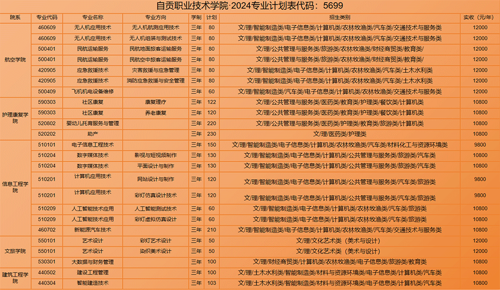 2024年单招专业计划表