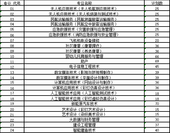 2024自贡职业技术学院各专业招生代码及计划