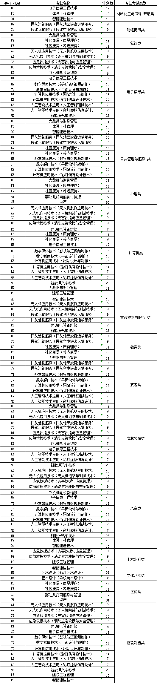 一、普高类各专业志愿填报代号及计划